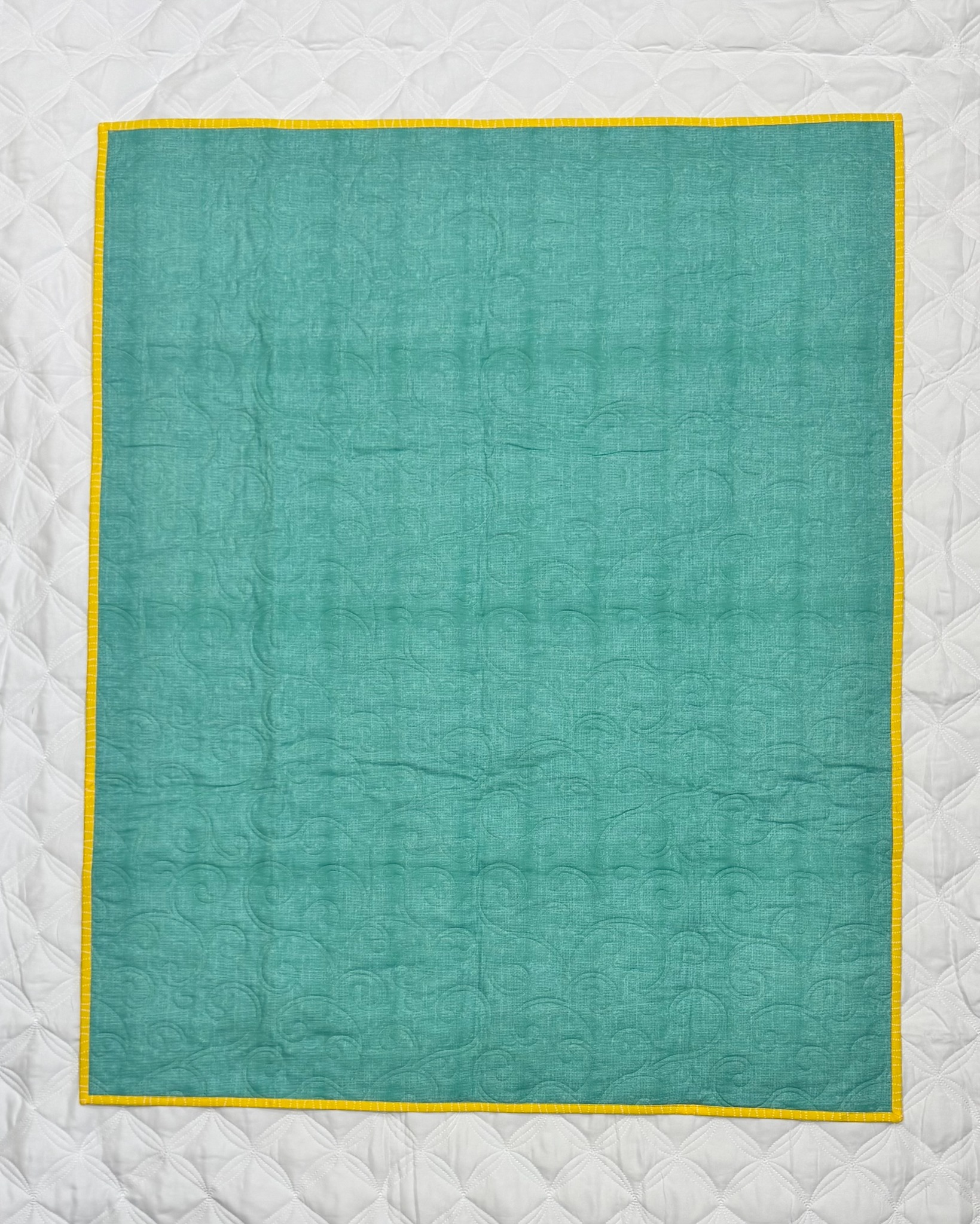 Bright, bold, and full of charm, the Sunshine Crossroads Quilt brings together rich emerald green, sunny yellow, and a mix of playful prints in a timeless geometric design. Each piece is carefully sewn to create a one-of-a-kind pattern that radiates warmth and joy. Finished with a teal backing and golden binding, this handmade quilt adds a cozy pop of color to any space. Perfect for snuggling, gifting, or brightening up your favorite chair.